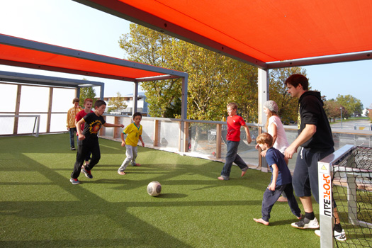 Ein außergewöhnliches Projekt. Die Gemeinde Lustenau hat bei uns angefragt, den Jugendplatz beim ehemaligen Hotel Huber in Zusammenarbeit mit der architekturwerkstatt dworzak zu gestalten. Da wir etwas zu teuer für dieses Projekt gekommen wären, haben wir uns gemeinsam auf die Suche nach einer realistischen Lösung gemacht. Und eine wunderbare Konstellation gefunden. In einem herzergreifenden Workshop mit Jugendlichen wurde die Architektur, der Ballspielplatz, der Skaterplatz, die Mädels-Lounge, etc. mit Fachmenschen erarbeitet. Ich persönlich habe mich um die Namensgebung und die zu kommunizierenden Regeln auf dem Platz gekümmert. Mit Jugendlichen, einem Polizisten und mir als Trainer haben wir vorab verschiedene Namen erarbeitet und vorgeschlagen und über eine Umfrage über Facebook und in Schulen wurde anschließend der Name HABEDERE gewählt.