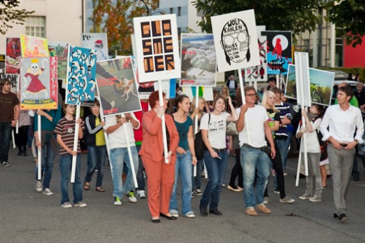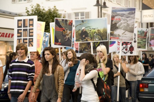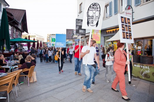Also sicher so um die 100 Leute haben die 100BestenPlakate durch Dornbirn getragen. Das Wetter war wunderbar. Es war wie früher. Demo. Polizei. Gefühl von Miteinander für eine Sache. Whow. Und es waren unterschiedlichste Leute mit dabei. Geniale Idee der deutschen StudentInnen. Die Vernissage der 100 Besten war ein toller voller Erfolg. Berlin, Essen, DORNBIRN, Luzern, Wien und Halle. Mehr Format ins Land…