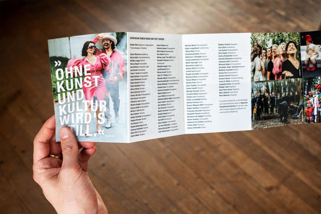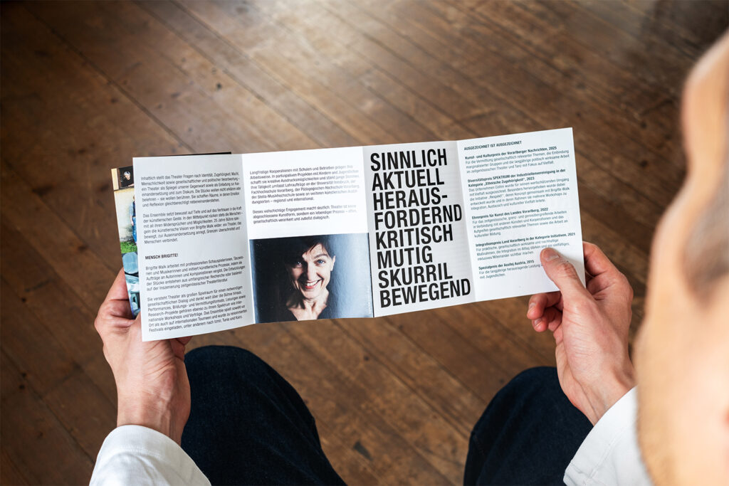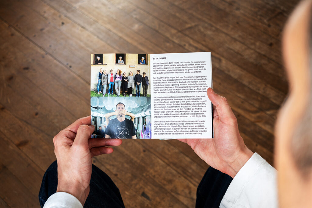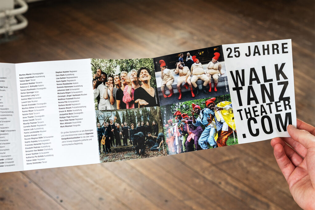 Unglaublich – 25 Jahre gibt es das Walktanztheater schon und fast die ganze Zeit dürfen wir die kulturellgesellschaftliche Kunst von Brigitte Walk und ihren so guten Leuten mit unserer DesignKommunikationsgestaltung begleiten. Jetzt ist Schluss mit Eigenproduktionen hat Brigitte mir gesagt. Also es gibt die tollen Leute noch, jedoch nur auf Auftrag und Bestellung. Also holt euch die Kultur ins Haus, ins Unternehmen oder in die Öffentlichkeit. Danke an alle.