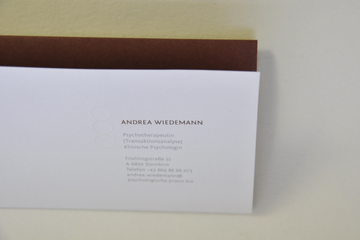 Für die Psychotherapeutin durften wir dieses ReDesign gestalten. Das Logo mit den 3 Kreisen war schon vorhanden. Wir haben nur den Feinschliff gemacht. Blindprägung, kaschierter Karton, Haptik, Ausstrahlung. Schön und gut. Gratuliere Cornelia.