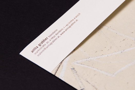 Für Anita Grabher durften wir diese feine Arbeit leisten. Erscheinungsbild mit Briefpapier, Kuverts, Visitenkarten und den Webauftritt. Cornelia Wolf hat die Entwürfe gemacht. Ewald Natter zeichnet für die Umsetzung der Website verantwortlich. anita grabher künstlerin Wunderbare Zusammenarbeit. Wir freuen uns auf die ersten Publikations-Hefte. Gibt eine spannende Serie.