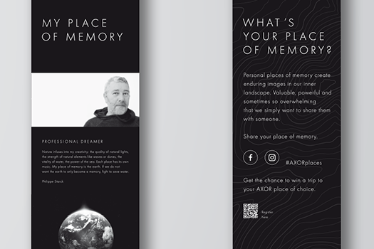 Nach vielen Monaten intensivster Zusammenarbeit mit dem Brand Marketing von AXOR (vorneweg Anke Sohn und Beate Broghammer) ist die neue AXOR Places-Kampagne weltweit online. Die Idee für die neue Kollektion der AXOR My Edition war, dass Materialien, die den Menschen was Besonderes bedeuten, auf den AXOR Armaturen Platz finden können. Darüber hinaus ging es um die Lieblingsplätze von DesignerInnen, ArchitektInnen oder KundInnen, die ein bestimmtes Material exklusiv ins Badezimmer holen wollen. Nachhaltigkeit und Individualität in höchster technischer und handwerklicher Vollendung war das Credo. Ein Stück aus der Welt in mein Badezimmer – dies ist die Kernaussage der Gestaltungsidee.