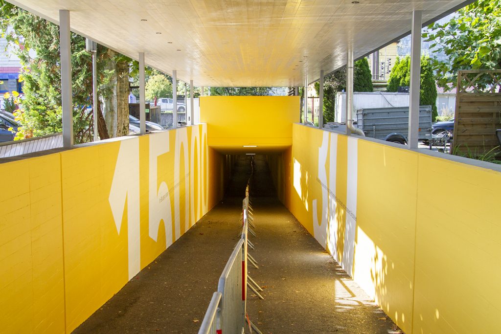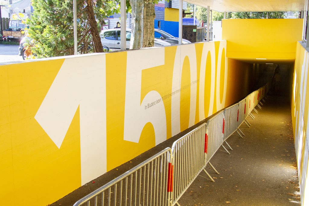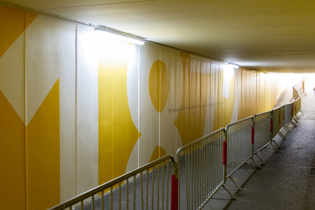 Ich persönlich bin besonders stolz darauf, da eine der ersten Arbeiten von Ruedi Baur, eine Unterführung war, bei dem er erzählt hatte, daß er mit ArchitektInnen, Sozialarbeitern, Soziologen, etc. über die Gestaltung einer Unterführung, die eine Gegend mit der anderen verbunden hatte, designt hatte. Insgesamt wurde die Gegend wiederbelebt und die Menschen trauten sich wieder durch die Unterführung zu gehen. Damals als junger Normal-Grafik-Designer wusste ich noch nicht, von was er gesprochen hatte. Jetzt durften wir selber so eine Unterführung freundlicher gestalten. Danke Ruedi für Deine Inspirationen.