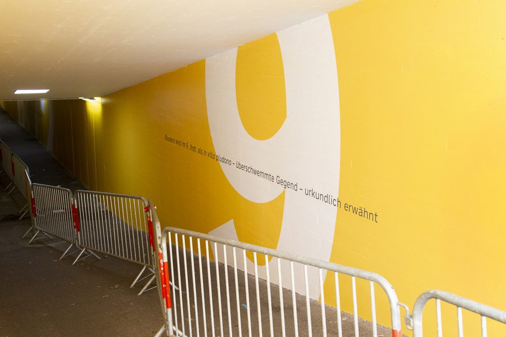 Über die Empfehlung der Farb-Raum-Gestalterin Monika Heiss, mit der wir bereits schon so viele Projekte gestalten durften, wurden wir von der Stadt Bludenz beauftragt, die Unterführung zu gestalten. Lisa Fink und Viktor Ölz haben sich total ins Zeug gelegt und diese gehaltvollen und interessanten Informationen in ein plakatives, farbenfroh helles und abwechslungsreiches Design gestaltet. Danke an die AuftraggeberInnen Peter Mahner und Stefan Bargehr und allen dahinter und dem Architekten Markus Ender für das Vertrauen und die ausführenden Firmen, dass diese Arbeit so schön werden durfte.