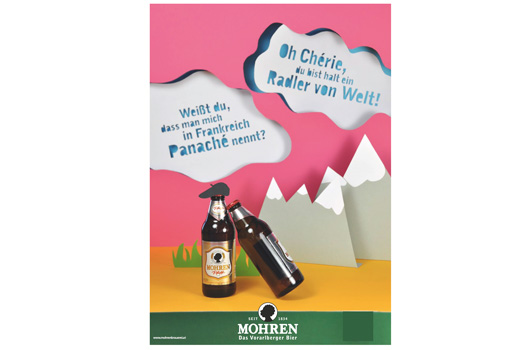 Es hatte alles sehr gut angefangen. Wir wurden angefragt, für die Mohrenbrauerei eine neue Kommunikationslinie zu erarbeiten. Hermann Brändle fand die richtigen Worte. Unser Team hat einfache, kleine Geschichten rund um die einzelnen Biersorten gestaltet. Wir kreierten die Idee, die Bierflaschen nicht zu fotografieren, sondern holten uns Daniel Flax mit ins Boot und er baute uns eine 3D Bühne mit 3D modellierten Bierflaschen. Eine lustige und flexible Gestaltungswelt war entstanden. In der Eile ist uns dann das erste Sujet ziemlich mißlungen und die Zusammenarbeit war abrupt wieder beendet. Übrig geblieben ist zum Glück die Idee, der 3D Bierflaschen. Schade, aber auch Scheitern ist eine Übung. Tut uns leid um die Aufgabenstellung. Aber die Entwürfe haben Spaß gemacht.