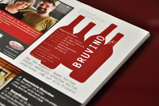 Leonie und ich haben diese kleine und feine Arbeit gestaltet. Eine schöne Idee, die als Gegenbeispiel unserer momentanen politischen Sprache funktioniert. Bruvino lädt Menschen ein, die eine andere Sprache sprechen können und wollen und alle sind eingeladen. Natürlich mit dem Hintergrund, das eine oder andere Gläschen zu trinken oder andere Gustos zu konsumieren. Aber insgesamt eine multikulturelle wertschätzende und wirkende Idee, wie wir meinen.
