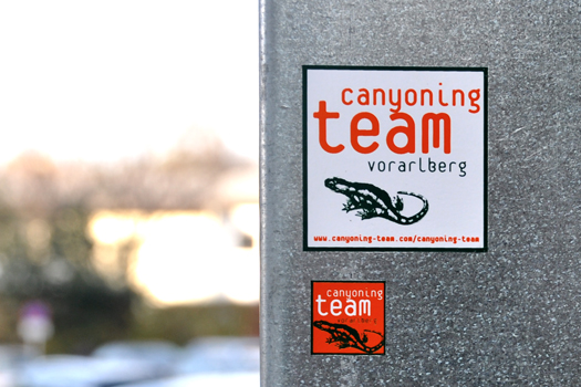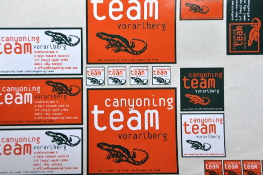 Manfred Fink, der Ex-Lebensgefährte von Ulli Valentini kam zu uns und wir haben seinen Salamander in eine Logotype eingebaut. Autobeschriftung, Kleber und Folder der ersten Phase seines Business haben wir gestaltet. Heute macht es Kurt Dornig. Ich würde mich übrigens nie trauen, eine Schlucht runterzuspringen. Nix für mich.