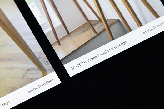 Schön, wenn wir die Gedanken auf unsere Arbeiten führen könnten – einfach Design und Kommunikation – im inhaltlich klaren Sinne, in der Reduziertheit, in der Gesamtausstrahlung – das was am geringsten und auf den Punkt gebrachte Designleistung unseres langjährigen Auftraggebers – der Tischlerei Engel und Brotzge – hervorkommt. Im Grunde wollen wir auch das einfach design unterstützen. Was es braucht, wird gemacht und dies ganz souverän und klar.