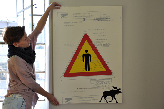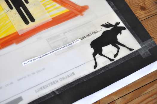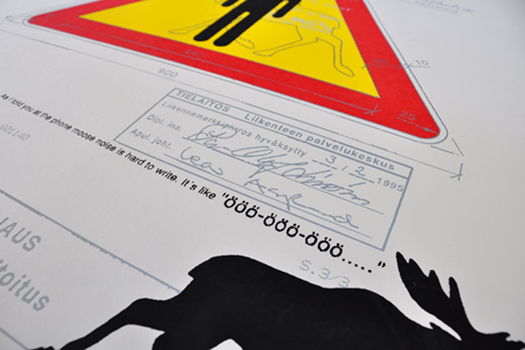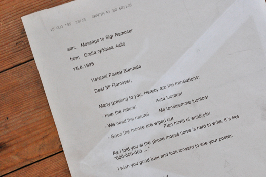 Reinhard Gassner und ich waren ja in Lahti und in ganz Finnland. Eine Woche lang. Aber das ist eine andere Geschichte. Mit diesen Impressionen hatten wir dieses Plakat als freie Arbeit bei weiteren Biennalen eingereicht. Die Sekretärin der Biennale in Lahti hatte uns per Fax die Übersetzung bzw. den Klang des Elchschreies geschildert. Aber solch lustige Geschichten kommen dann im Plakat leider nicht zur Geltung. Aber die Erzählung ist ganz und gar witzigst.