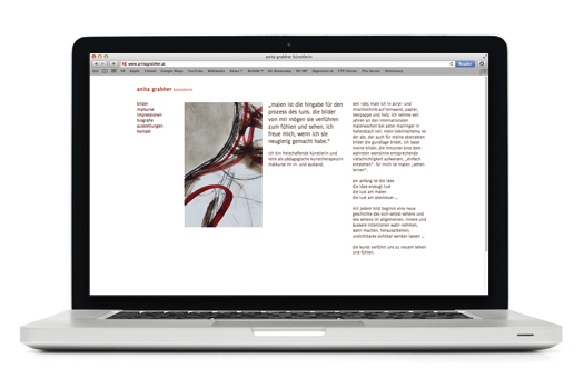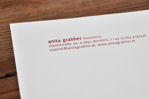 Für Anita Grabher durften wir diese feine Arbeit leisten. Erscheinungsbild mit Briefpapier, Kuverts, Visitenkarten und den Webauftritt. Cornelia Wolf hat die Entwürfe gemacht. Ewald Natter zeichnet für die Umsetzung der Website verantwortlich. anita grabher künstlerin Wunderbare Zusammenarbeit. Wir freuen uns auf die ersten Publikations-Hefte. Gibt eine spannende Serie.