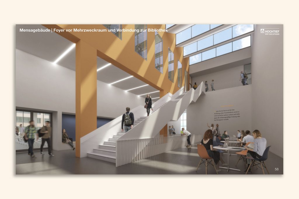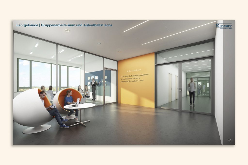 Eine Einreichung für ein Unternehmen wie Auer Weber Architekten München/Stuttgart – im Auftrag der HochTief Unternehmung, das an große Architekturbüros und Immobilienentwicklungsfirmen in ganz Deutschland ausgeschrieben wurde – die Verortung war noch gar nicht klar – wo studieren Polizist:innen und Verwaltungsmenschen in Deutschland und wie sieht das am Ende aus? Wir durften die Einreichung mitgestalten. Elias Riedmann und Erwin Kamoglu aus Sägenvier haben mit mir alles geleistet und siehe da – es hat zu Erfolg geführt. Also nicht nur Markenentwicklung und Kommunikation und Signaletik ist die Kompetenz von Sägenvier – auch für Einreichungen können wir zumindest wertvolle Beiträge leisten. Danke an dieser Stelle an alle Beteiligten.