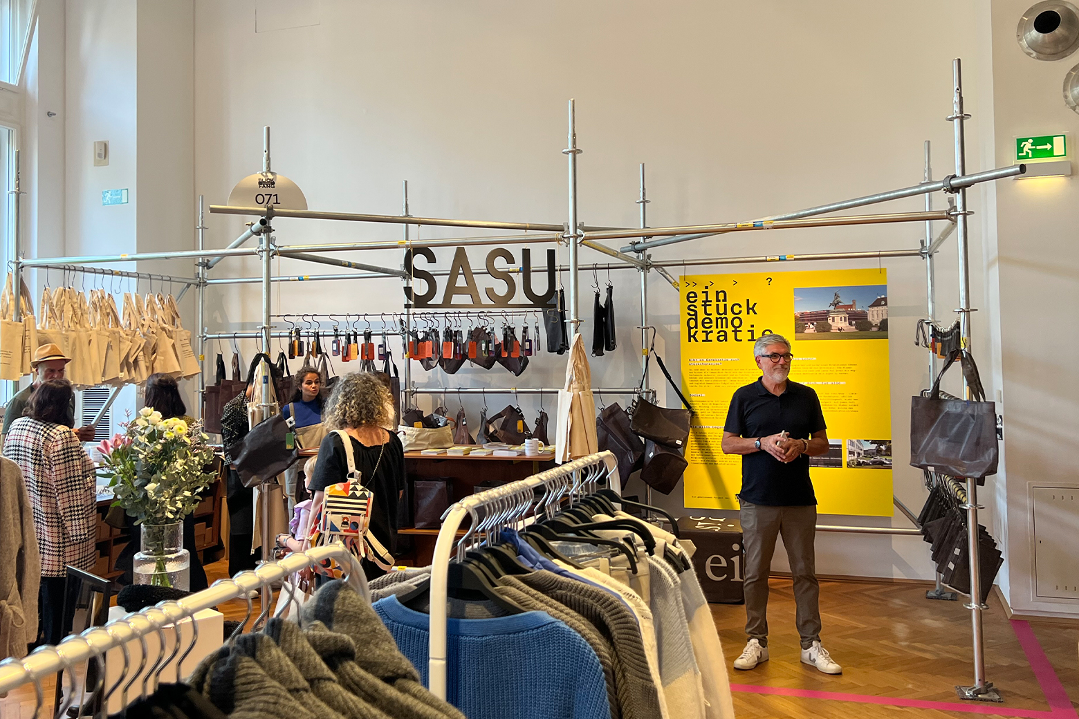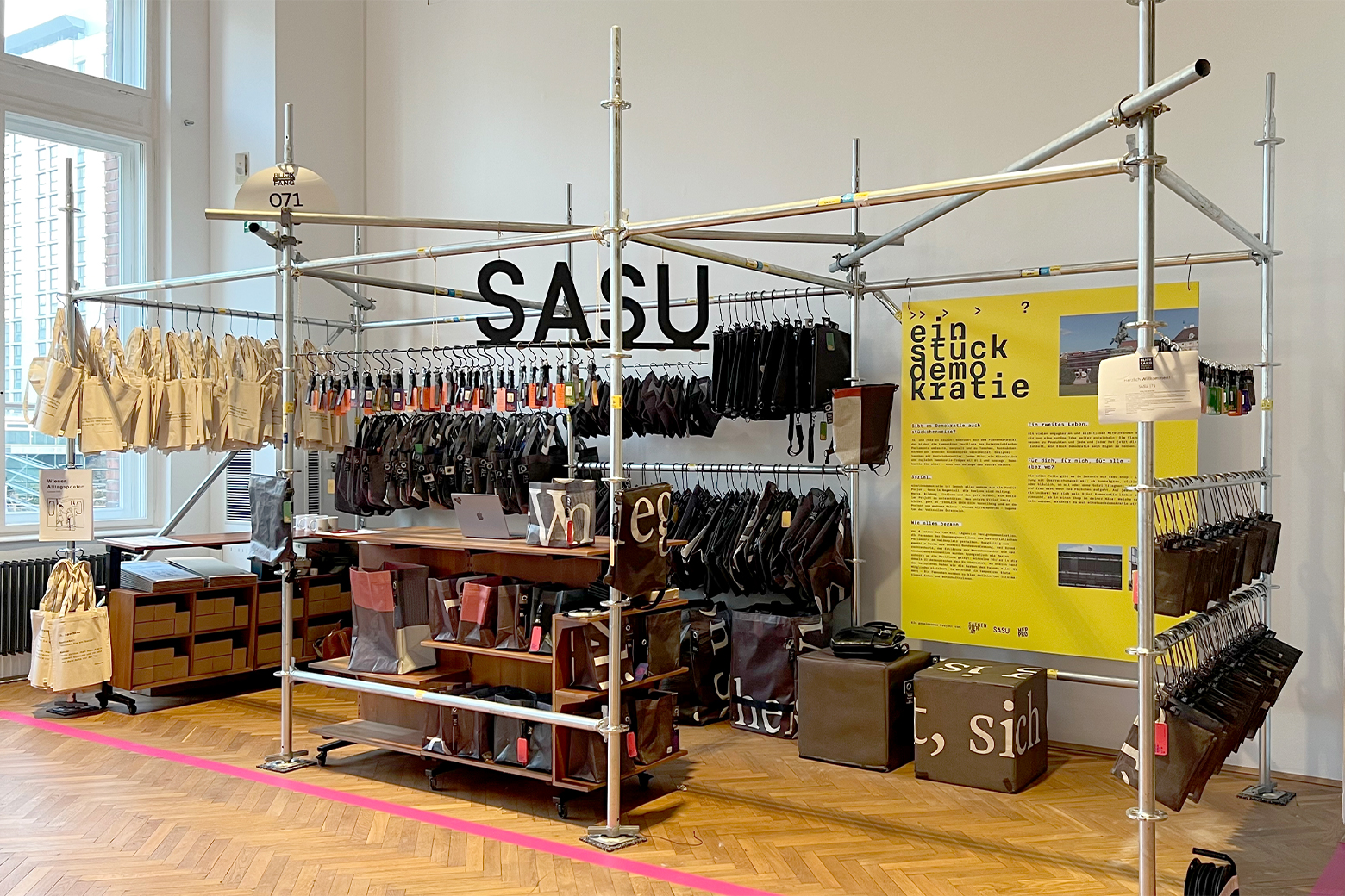 Gemeinsam mit Heppro und SASU (Susanne, Dieter, Tabea und Benny) waren wir Sägenvier (Leonie, Sigi und Anna) das erste mal auf einer Designmesse im MAK in Wien. Wir haben die mitgenommenen Produkte fast alle verkauft und die Produktion läuft weiter. Das Feedback der Menschen war zu 100% positiv. Die Konzeption und Planung des Messestandes mit Baugerüst-Teilen haben Jonas Ramoser und Lennon Lee Hartmann mit bravour gestaltet auch noch selber auf- und wieder abgebaut. Einen Marktstand wie auf italienischen Märkten – nur halt superschön und praktisch wollten wir haben. Wir alle durften bei diesem Messeauftritt so viel dazu lernen. Was alles notwendig ist und nicht vergessen werden darf. Und natürlich war es sehr anstrengend für unsere Körper und Stimmen. Aber der Erfolg ist da und der Start unseres Projektes ist mehr als bestens gelungen. Danke an alle, die uns besucht und bestätigt haben. Und auch danke an die Blickfang-Organisator*innen. Alles hat bestens geklappt und wir haben uns sehr wohl gefühlt.