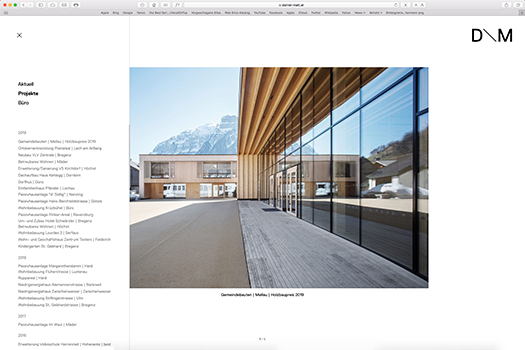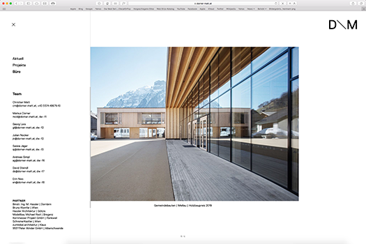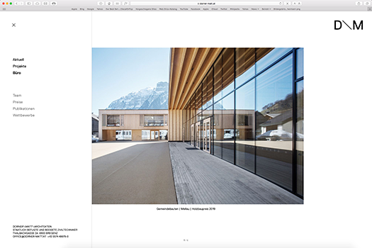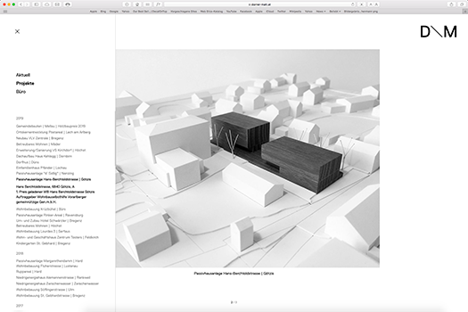 Nach der Entwicklung des neuen Erscheinungsbildes ist nun auch der neue Webauftritt von Dorner Matt Architekten online. Elias Riedmann hat eine sehr feine und schlichte Seite in die Welt gestaltet.