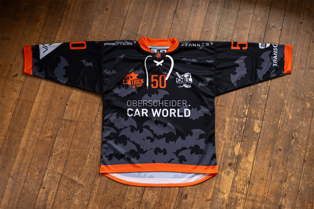 Und der nächste folgt zugleich… Lucas Haberl hat dieses Dress für das EHC Lustenau Halloween-Party gestaltet. Die Leiberl wurden live versteigert und haben unserem Verein wieder gutes Geld für die Jugendarbeit eingebracht. Danke an alle, die diese Arbeiten unterstützen und möglich machen. macht viel Freude. Juhu!