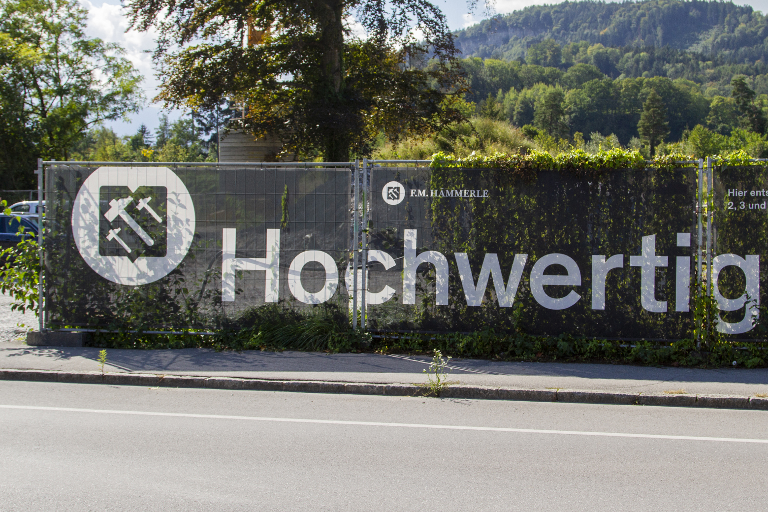 Der Bauzaun wird oft für Ankündigungen unterschätzt. Hier kann neugierig gemacht werden, was da wohl passiert und gebaut werden wird. Auch ein Teil der Signaletik und der Kommunikation und des Marketings. Sophia zeichnet für die Gestaltung verantwortlich. Tolle Projekte von F.M. Hämmerle. Danke für die Zusammenarbeit.