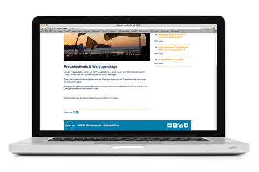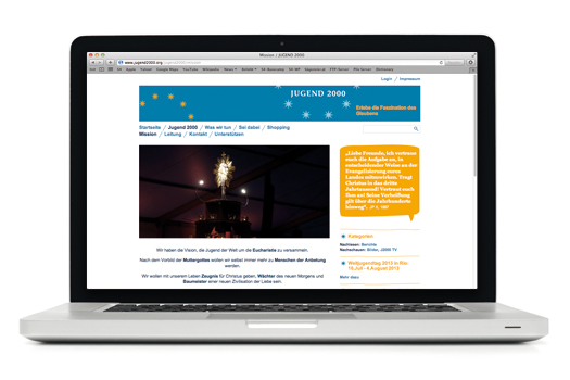 Die jungen deutschen KatholikInnen haben sich bei uns ihre Plattform gestalten und programmieren lassen. Eine komplexe Sache. Jugend überall. Sehr lebendig. http://www.jugend2000.de/
