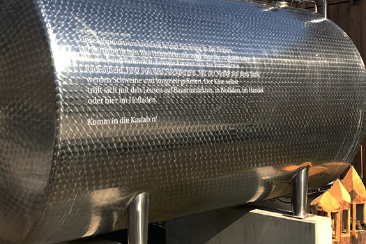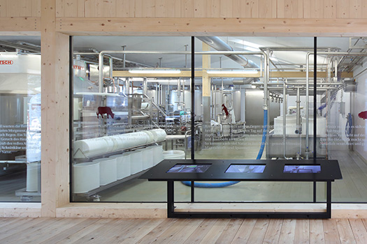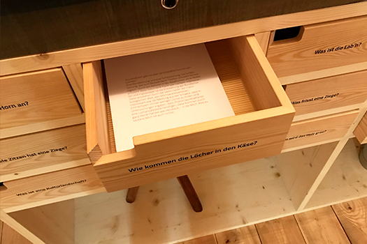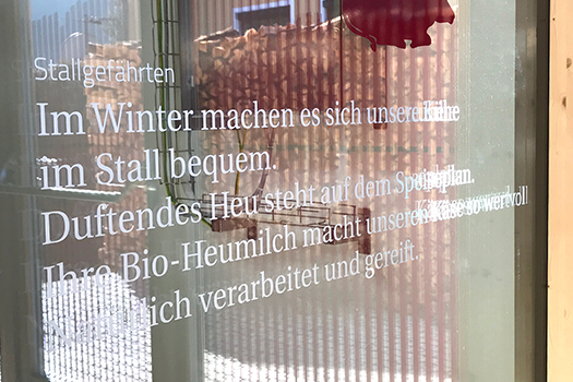 Mit den Architekten Sonja Hohengassner und Jürgen Wirnsberger durften wir dieses aus mehrerer Hinsicht sehr interessante Projekt signaletisieren. Das kleine und feine Erscheinungsbild, Texte von Hermann Brändle und die Gestaltung von Monika Schnitzbauer beleben die Schaukäserei und den Laden. Auch eine kleine Ausstellung mit spielerischen Zugängen zur Information rund um die Käseherstellung und die Natur gibt es. Für KärntenbesucherInnen ein heisser Tipp. Danke auch dem Auftraggeber Michael Kerschbaumer. Ein sehr offener und wacher Geist und Naturbursch.