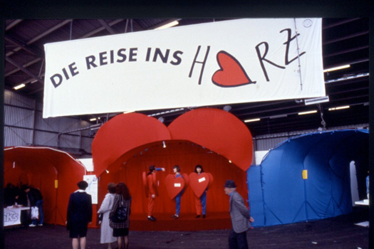 Für die Agentur Meraner und Schneider habe ich diese Messestandgestaltung gemacht. Feine und offene Zusammenarbeit mit Peter Meraner. Heute betreibt er eine Bar in Wien und lebt auch dort. Für die Vorsorge- und Sozialmedizin war diese Reise ins Herz inszeniert. Die BesucherInnen konnten durch die Schlagadern wandern und die Risiko- und Gesundheitsinformationen so auf lustige Art erfahren, bzw. erlaufen. Und man konnte auch seine Herzfrequenzen und den Blutdruck messen.