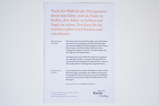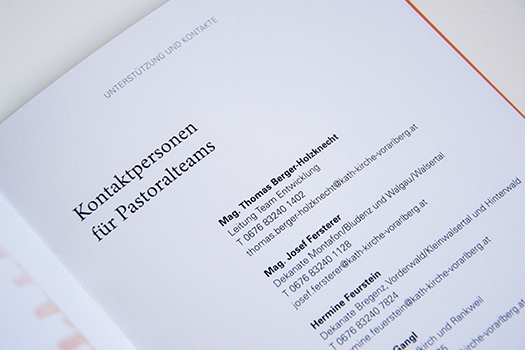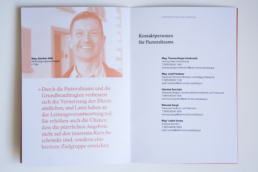 Eine kleine feine Arbeit für die Katholische Kirche Vorarlberg von Astrid Neumayr. Für die Menschen, die in der Pfarre die Geschicke gemeinsam gestalten. Ein Leitfaden und Informationen über Weiterbildungsmöglichkeiten. Quasi ein Starter-Kit als Service der Diözese.