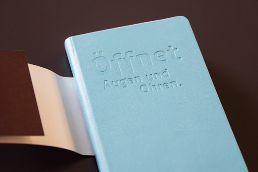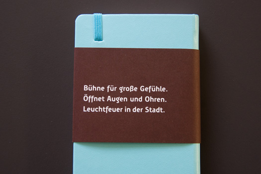 Für die Akquise der VeranstalterInnen haben wir für das Montforthaus ein Leuchtturm-Notizbüchlein gestaltet. Ein wertiges und klares Bekenntnis der Stadt Feldkirch zu Ihrer 500jährigen Rheticus-Geschichte. Kultur- und Wissensvermittlung und Treffpunkt in zeitgemäßem Kleid.