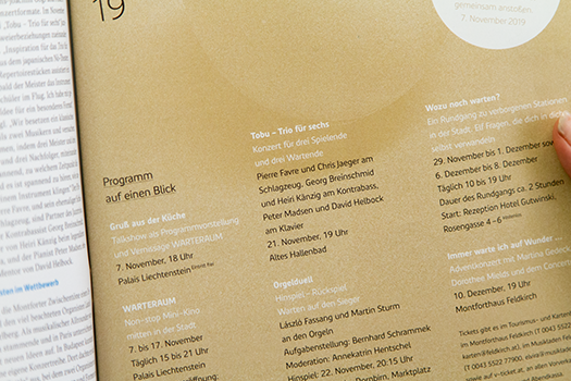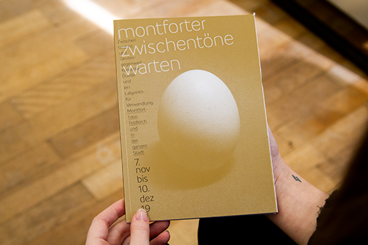 Nach vielen KollegInnen in und ausserhalb Vorarlbergs durften wir heuer das Sujet für das Thema Warten gestalten. Und auf was wartet man mehr, als auf eine Geburt. Doch ein Ultraschallbild war uns zu mystisch. Dann mit Hilfe von Hans-Joachim Gögl kamen wir auf das Ei. Dies wird gebrütet und schlüpft in voller Überraschung und hält der Aufgabe als Bild sehr gut stand. Danke an Elias Riedmann, der das Sujet in die grafische Welt gehievt hat.