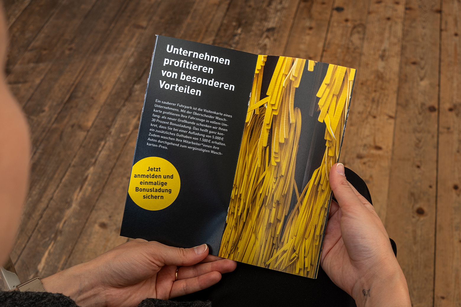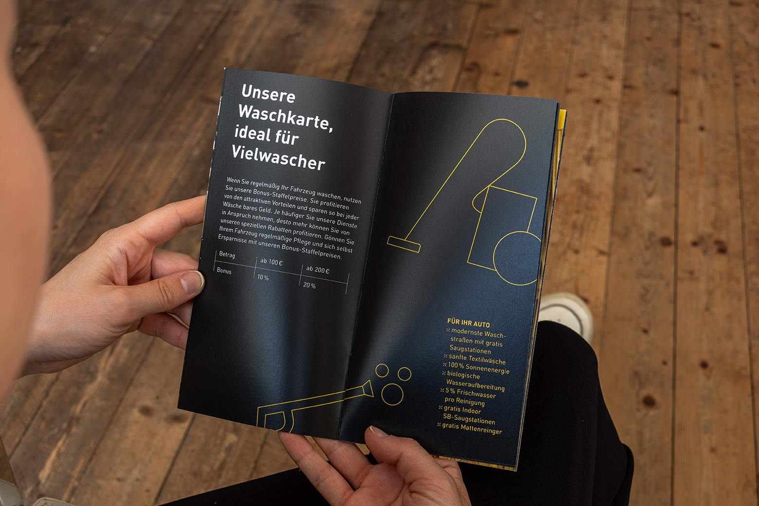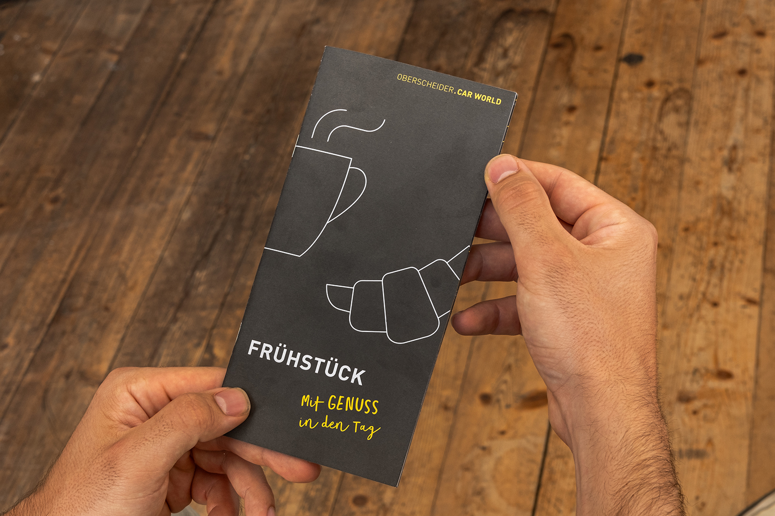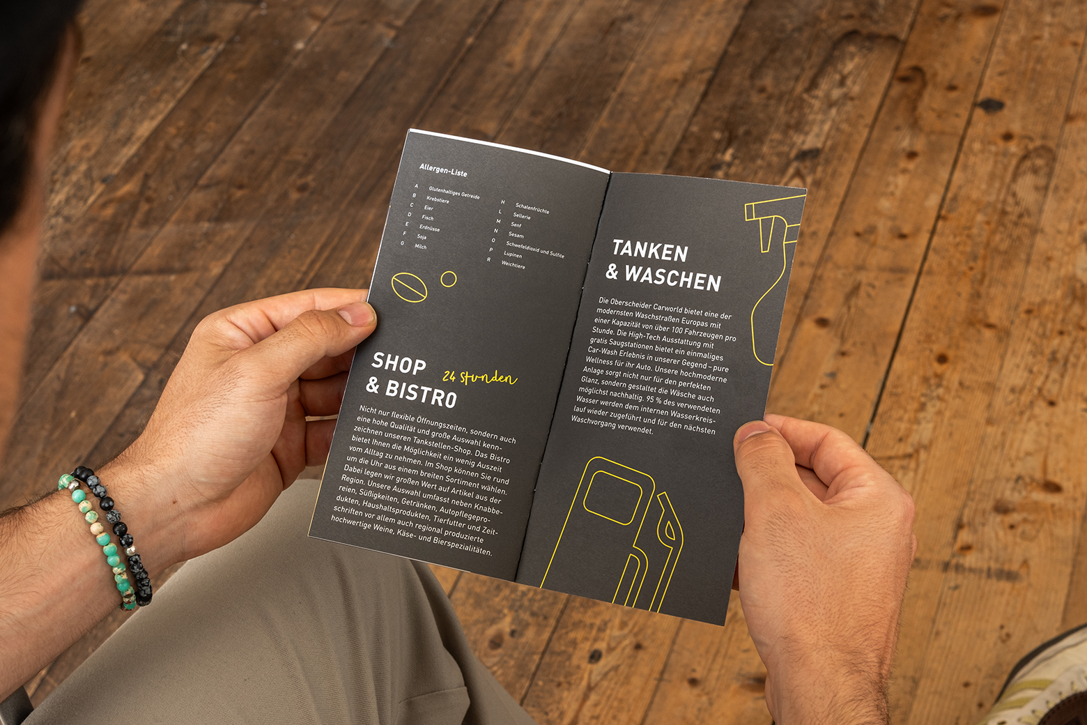 Step by Step gelangen die Kommunikationsmittel zu den Empfänger*innen. Hier die Broschüre für die CarWash-Cards – was alles damit möglich ist und was das Auto und vor allem die Driver*innen für Vorteile geniessen können. Und der Folder für die Frühstücksinfos für die CarWorld in Lustenau. Oha! – Frühstücken und Auto waschen? Und dann noch super shoppen? Lustenau ist zu beneiden.