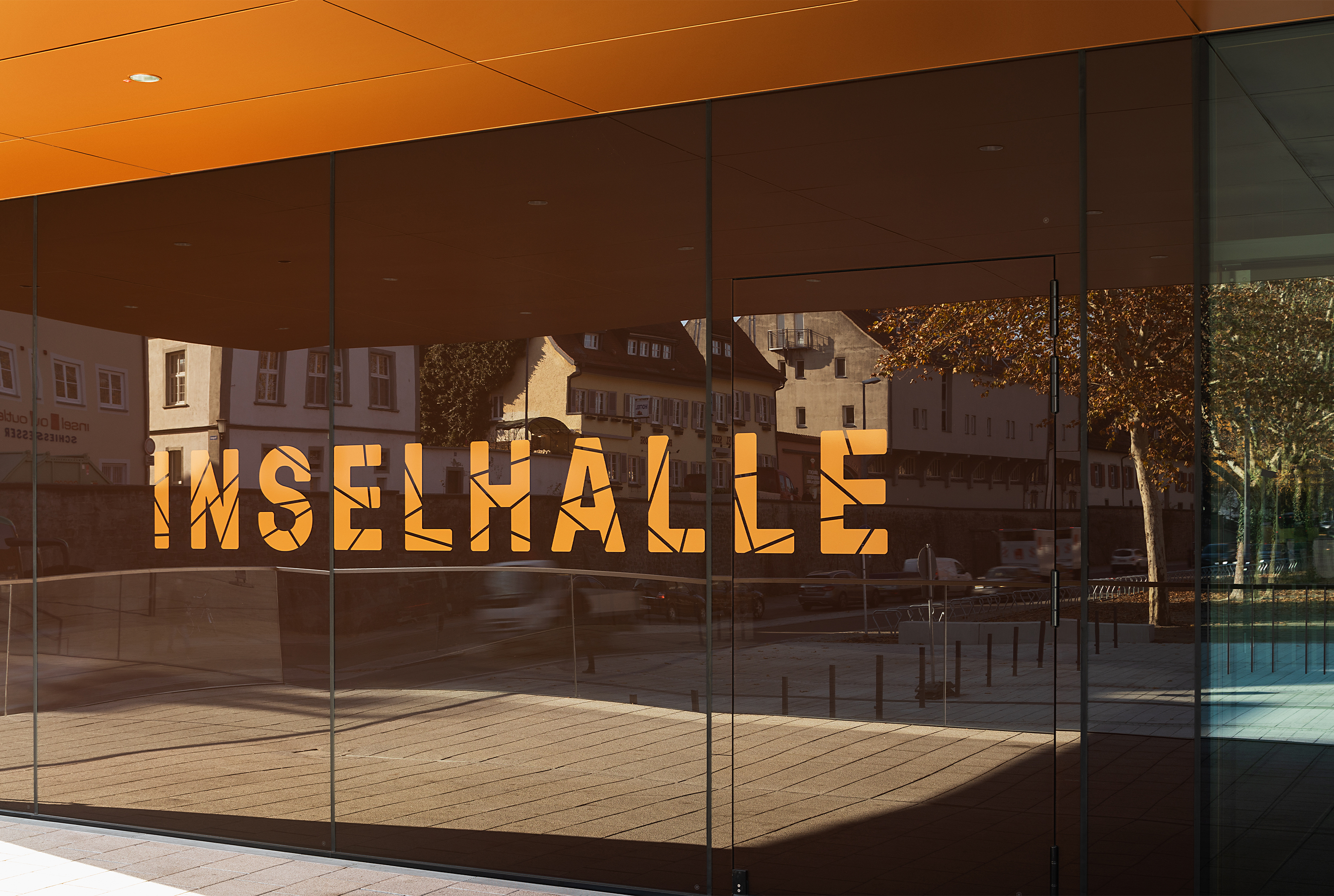 Herausforderung: Wir bekamen den Auftrag für die Inselhalle und das anschließende Parkhaus ein Orientierungssystem zu konzipieren und zu gestalten. Dafür verbanden wir Signaletik mit Szenografie. Formal reflektieren wir die Architektur von Auer Weber/Stuttgart, München, narrativ assoziieren wir die Topografie der Insel.