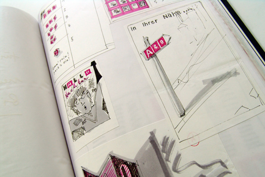 Als wir noch mit Pantone Markerstiften scribbelten und mit Minolta Kopierer und Schere unsere Layouts zusammenklebten. Das waren noch Zeiten. Chemie für farbige Schriften. Bunte Stifte und Farbgeruch überall im Atelier. Da wird man schon wieder melancholisch. Wir werden in alter Poschauko-Manier unsere Stifte spitzen und nebst perfekten Computerentwürfen mit Hirn und Herz und Hand gestalten.