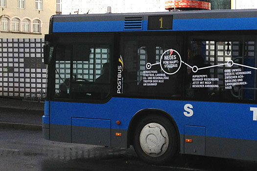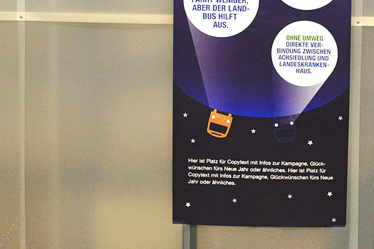 Zum Fahrplanwechsel hat Klaus Österle diese schönen Plakate gestaltet. Es geht darum, die Änderungen sympathisch und klar zu kommunizieren. Ist geschafft, wie wir meinen.