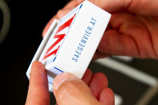 Wir waren zum Hearing geladen. Mit Bauer und Motas Design im Mitbewerb. Bearbeitet wird das Projekt jetzt mit Motas Design. Unsere KollegInnen aus Kematen, die auch mit dem Podcast geraumt alle Felder der Signaletik und Szenografie super beleuchten. Für die AuftraggeberInnen ist dies sicher auch eine gute Wahl. Alle 3 Geladenen hätten die Aufgaben mit Bravour gelöst. Wettbewerb ist Wettbewerb – und wir respektieren die Entscheidung. Die Zigarettenschachteln – von unserem Freund Erich Wiesmüller gestanzt und gefertigt und von Elias Riedmann für alle im Gremium persönlich gestaltet – das war eine echte Freude, die Dinger zu gestalten und es ist vielleicht ein leichter Duft in den Vorhängen hängen geblieben. Wir sind gespannt auf die Ergebnisse. Danke für die Einladung zum Hearing.