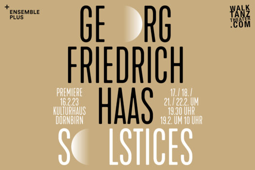 „Solstices“, ein Tanztheaterprojekt zur gleichnamigen Komposition des international renommierten Vorarlberger Komponisten Georg Friedrich Haas, ist am 16. Februar 2023 als Uraufführung in Dornbirn/Österreich zu sehen. Umgesetzt wird es als Koproduktion von walktanztheater.com und Ensemble plus. Dahinter steht die Regisseurin Brigitte Walk, der das Land Vorarlberg 2022 den Ehrenpreis für Kunst verlieh, sowie das Ensemble plus unter der Leitung von Guy Speyers. Das Ensemble plus widmet sich seit vielen Jahren der Aufführungspraxis zeitgenössischer Musik.