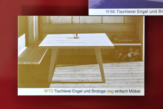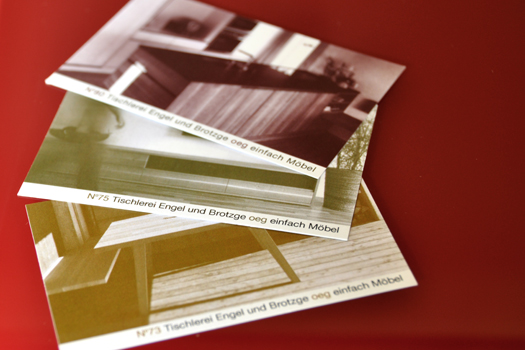 Über die agilen Tischlerjungs haben wir in unserem Blog bereits einige Male geschrieben. Hier ein paar Impressionen von ihrer fein und klein abgestimmten DesignKommunikationsarbeit. Jede Arbeit bekommt einen Platz im Internet, im Inserat in der Kultur und als Visitenkarte. So sind die kleinen Kärtchen mit der Zeit eine schöne Kollektionsübersicht. Und immer ganz speziell. Fast eine Edition. Weniger ist manchmal eben mehr.