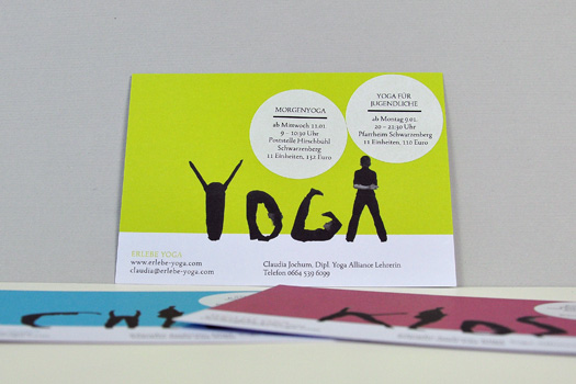 Dass Yoga keinesfalls verstaubt und nur für Esoteriker ist, sieht man an „Erlebe Yoga“. Die diplomierte Yoga Alliance Lehrerin Claudia Jochum erhielt von uns ein Erscheinungsbild mit einer Yoga-Body-Font und frischen Farben auf Karten sowie im Web. Schaut mal vorbei, tut sicher gut! www.erlebe-yoga.com Namasté.