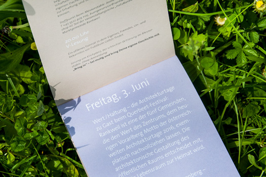 Lena Seeberger hat diese Kommunikationsmittel für das Querbeet 2016 gestaltet. Feine Grafik, schön abgestimmte Farben, gefühlvolle Illustrationen. Bravo und toitoitoi für die tolle Veranstaltung. Ein innovatives Projekt der Marktgemeinde Rankweil mit viel Spirit in Richtung Ortsentwicklung.
