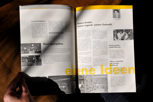 Die wichtigen Zeitungen, in denen eigentlich sämtliche Inhalte – neben dem Webauftritt – innerhalb einer Wahlkampagne kommuniziert werden, haben wir zweifarbig und sehr einfach gestaltet. Soll ja nicht zu teuer aussehen, das Ding…