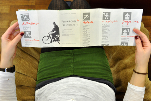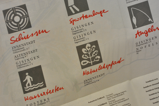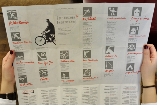 Das war einer meiner ersten Jobs als Student. Bei Harry Marte in Götzis habe ich gearbeitet. Er hat mich mit dem Entwurf des Freizeitplans der ÖVP Feldkirch beauftragt. Bürgermeister Pilz hatte sich damals wieder zur Wahl gestellt. Später kam dann ja Wilfried Berchtold. Jedenfalls eine Menge Piktogramme mussten gemalt und gezeichnet werden und dann ca. 17 Aufleger als Reinzeichnungsvorlage für die Druckvorstufe. Dabei hatte mir dann ein Mitarbeiter vom Atelier Marte geholfen. War eine Höllenarbeit. Alles von Hand gezeichnet und auf die schwarz-weiss-Vorlage eines Planfilms platziert. Wahnsinns Layout…