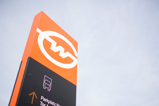Damit alle hinfinden, wo sie hinfinden sollen, haben wir das Aussengelände mit feschen Stelen ausgestattet. Die Welt trifft sich beim Weiss.