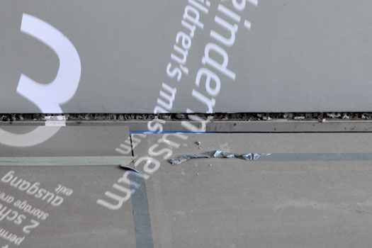 Bald ist die Ausstellung Sein und Mein im vorarlberg museum auch schon Geschichte. Wir waren bei dieser seh- und hörbaren Ausstellung für die Beschriftungsgestaltung zuständig. Die Aussenkennzeichnung liessen wir in weissem Spannteppich mit Wasserstrahl schneiden. Erste Experimente lagen in unserer Säge. Sind auf die neue Thematik „Ganz Nah“ schon sehr gespannt.