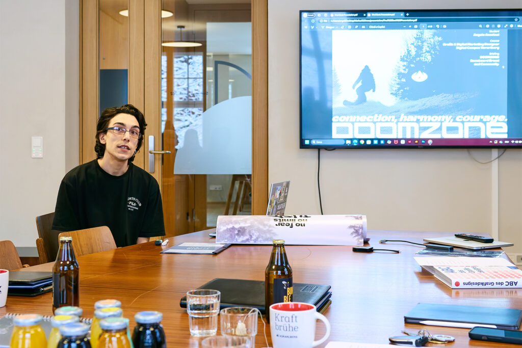 Damals noch mit dem Wohnzimmer gemeinsam haben wir für die Skiregion Arlberg eingereicht. Reinhard Gassner hatte den Wettbewerb beraten und begleitet. Das ist immer eine Garantie für Qualität in der Ausschreibung. Walter Bohatsch hat den Pitch gewonnen. Seine Lösung ist auch sehr gut. Wir wären gerne unserer Erscheinungsbildidee beim Skifahren begegnet.