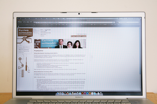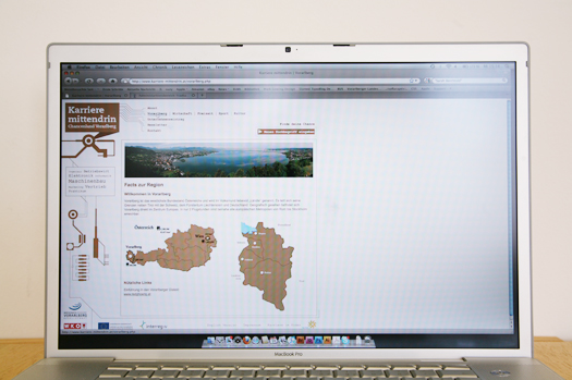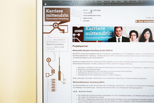 Mit Ewald Natter haben wir die Job-Info-Plattform umgesetzt. Hier können Leute die besten Arbeitsplätze finden und Unternehmen können ihre Angebote platzieren. Gepaart mit Informationen über Vorarlberg und seine Natur und Infrastruktur. Eben Karriere mittendrin.