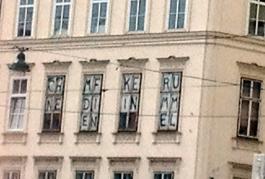 Ich hab ihn Wien auf der linken Wienzeile zufällig diese zwei Bilder hintereinander gemacht. Habs grad beim Tauschen der Sprüche erwischt. Kommunikation direkt.