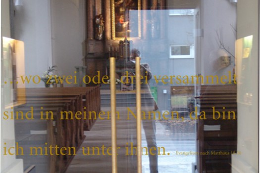 Für die Pfarre Lochau haben wir diese Glastüreneingangsbeschriftung gestaltet. Eigentlich soll Sichtschutz als Sicherheitsmassnahme dienen. Aber, wenn da noch was Inhaltliches kommunizieren kann, meinen wir, dann ist allen gedient. Herrrreinspaziert.