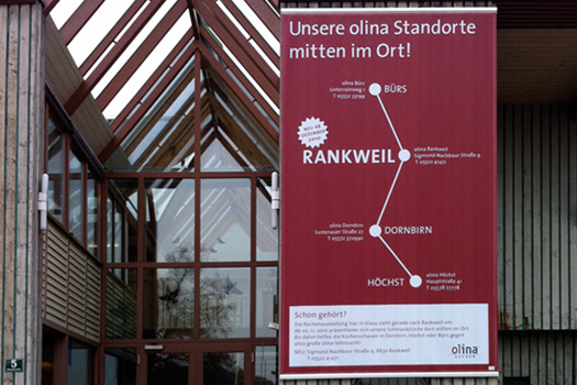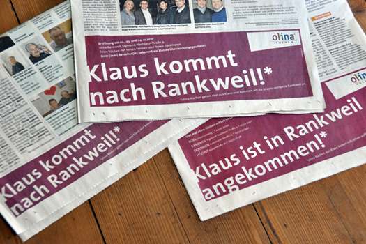 Da hat sich so mancher und manche RankweilerIn gehörig gewundert. Ein aufgelegter Elfer. Der Olina Schauraum zieht von Klaus nach Rankweil. Eine klare und kommunizierende und funktionierende Werbeidee. Für Olina Küchen dürfen wir seit 2010 die Kommunikation betreuen. Und wo ist jetzt der Klaus?