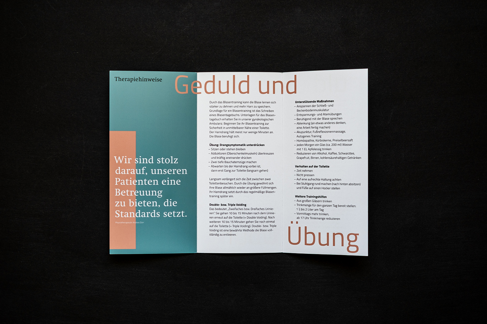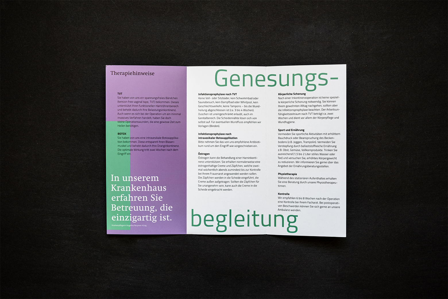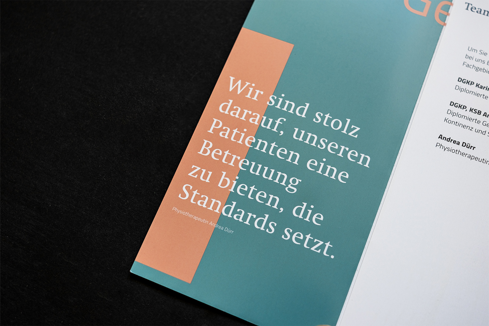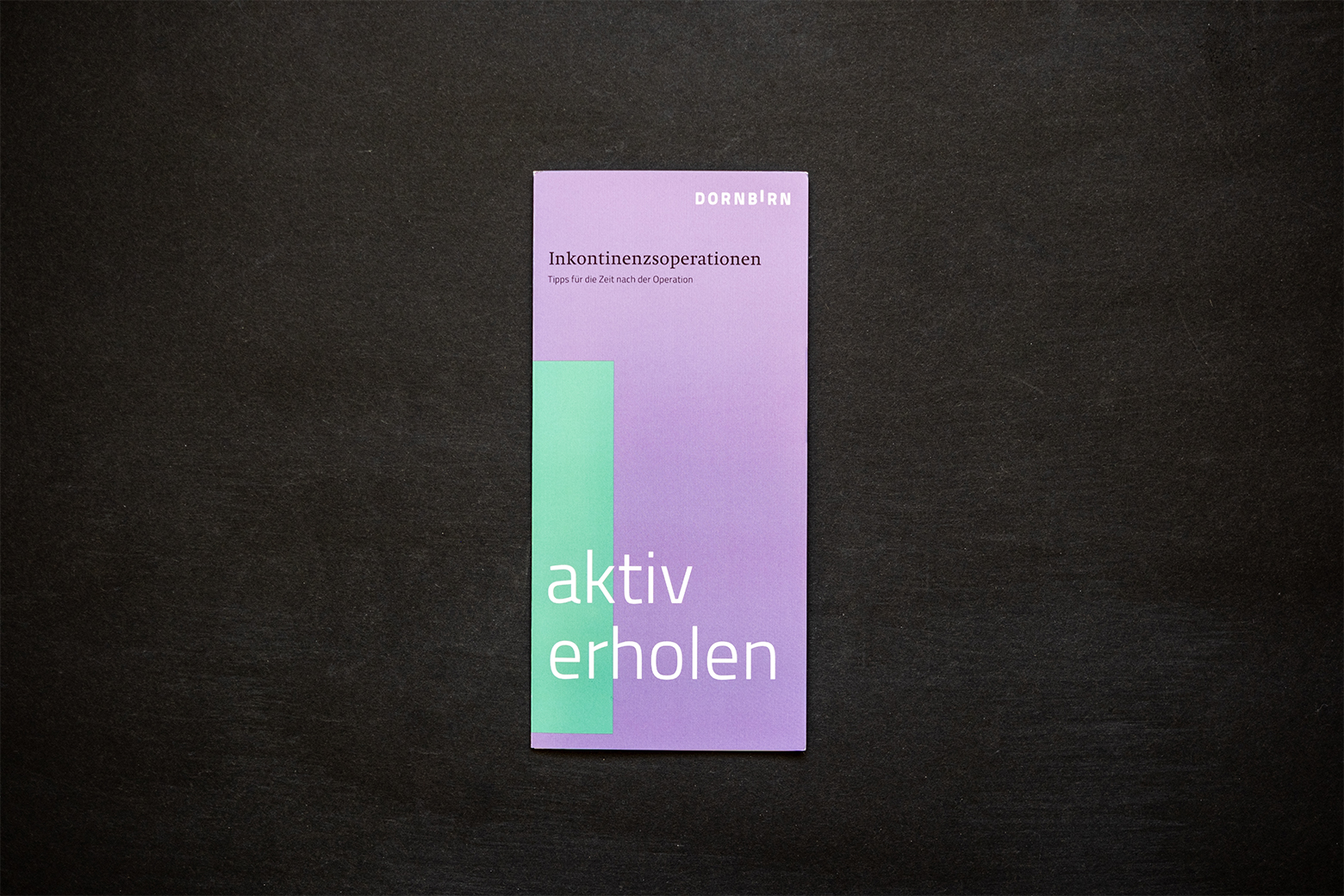 Themenfolder für das Krankenhaus Dornbirn. Mal ohne Bilder, ohne Piktogramme, ohne Illustration – nur Stilelement des Corporate Design, ein paar feine Farben und klare Typo. Auch mal schön.
