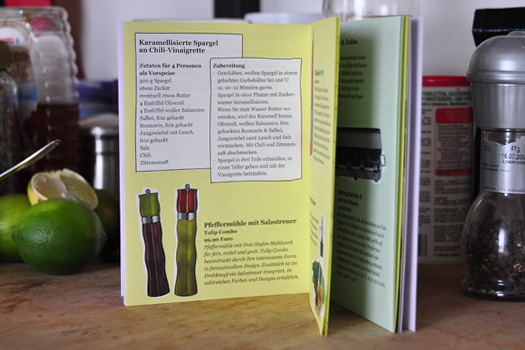 Ist ein schöner Folder geworden, mit einer Menge Tipps und Tricks, Schönem und Schmackhaftem aus dem Reich der Küche und Illustrationen von Irene Gonzáles Chana.