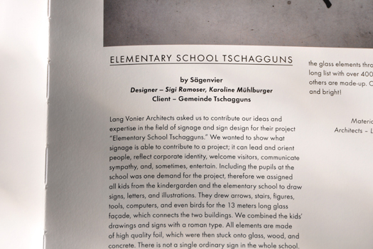 Kinder, Kinder. Wirklich sehr erfreulich. Nach dem European Design Award 2009 sind wir nun auch Träger des Designpreis Deutschland 2011. Aus 1.500 Arbeiten, die bereits national oder international ausgezeichnet wurden, sind wir unter den 50 Besten. Also bei den Besten der Besten. (Immer diese Angeberei…) Aber mit dieser kleinen, feinen Arbeit in diesen großen Reigen zu kommen, das macht uns schon stolz. Und wir danken wiedermal bei den großartigen Architekten Hans-Peter Lang und Christian Vonier und natürlich auch bei dem groß- und freizügigen Kunden – der Gemeinde Tschagguns. Schön, wenn man gemeinsam so gut zusammen arbeiten kann und darf. Und wir bedanken uns bei Karoline Mühlburger, die maßgeblich am Projekterfolg beteiligt war. Und natürlich natürlich dürfen wir nicht vergessen, den Kindern zu danken, die uns die tollen Zeichen und Zeichnungen „geliefert“ haben. Und obendrein haben wir gerade heute erfahren, daß unser Projekt auch im Verlag Die Gestalten, Berlin publiziert wurde. Kommt wirklich in der ganzen Welt herum, dieses Tschagguns…