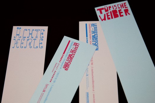 Mit „Zum Lesen verlocken“ hat 1988 alles angefangen (sind wir schon alt…). So lange betreuen wir die jetzigen Lesefestwochen schon. Jedes bzw. jedes zweite Jahr dürfen wir die Veranstaltung „designen“. Heuer hat Christian die Tüpischen Weiber und Ächten Kerle visualisiert. Ein feiner Einstieg.