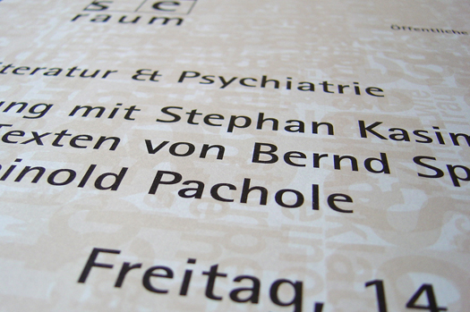 Für die PsychoSoziale Gesundheitsdienste Vorarlberg GmbH – ab sofort Pro Mente Vorarlberg GmbH haben wir dieses Erscheinungsbild entworfen. Mit einer Offsetplatte – Inhalt Textur mit Texten aus Patientengesprächen bildeten wir ein Stilelement mit dem es möglich wurde, sämtliche Drucksachen mit Einfarben-Aufdruck zu generieren. Einladungskarten, Folder, Lesezeichen, Bucheinbände, Plakate… Alles hält zusammen und ist doch so eigenständig und lebendig. Die Druckerei haben wir einfach einen halben Tag gemietet und mit Makulatur und Papierumdreh-Experimenten konnten wir diese grafischen Muster und Untergründe „designen“. Analog und digital. Und eine erste kleine feine Signaletikarbeit mit den Textfragmenten als Beschattung ist damals auch entstanden.