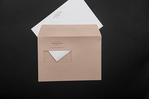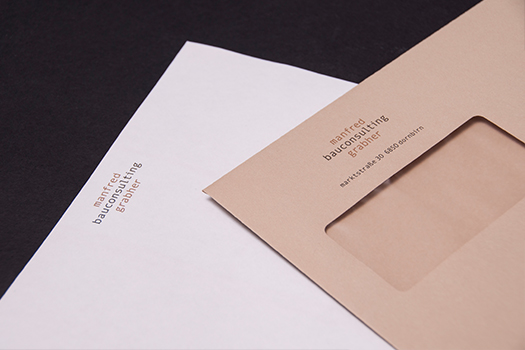 Manfred Grabher hat seine Firma 2015 an seine Tochter Katharina und seinen Schwiegersohn Andreas übergeben. Und jetzt ist er unterwegs als Berater für Glasbau und sonstige Baufragen. Und wir durften ihm die Geschäftsausstattung gestalten. Stefan Amann hat uns die Kuverts spendiert. Super Verwendung, wie ich finde. Der Entwurf stammt von unserer Praktikantin Claudia Kaufmann und die Detailgestaltung und Reinzeichnung von Sophia Ellensohn.