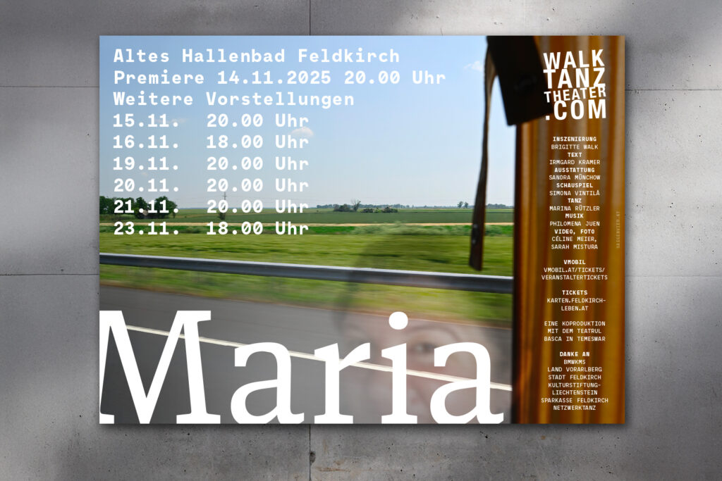 Gestern waren wir im alten Hallenbad in Feldkirch und waren total begeistert über das Thema, die Inszenierung, die Bühne, die 3 Frauen (Gesang, Schauspiel, Tanz) und es gab lange standing ovations. Herzliche Gratulation zum Stück und danke für die so feine und langjährige Zusammenarbeit. Das Sujet wurde von Lucas und Sigi entworfen. Hat super gepasst, wie wir finden.